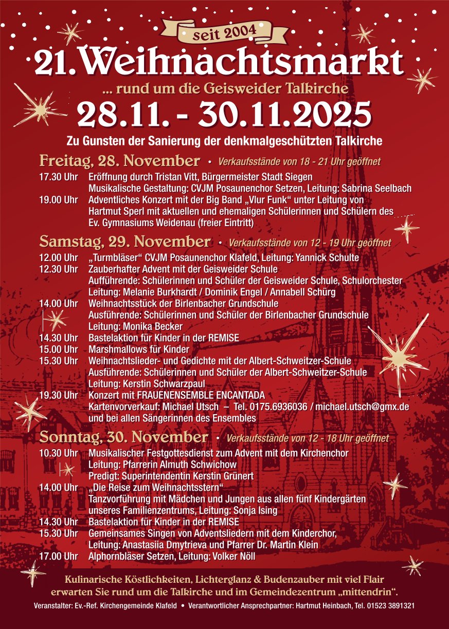 • 21. Weihnachtsmarkt "Rund um die Talkirche"
