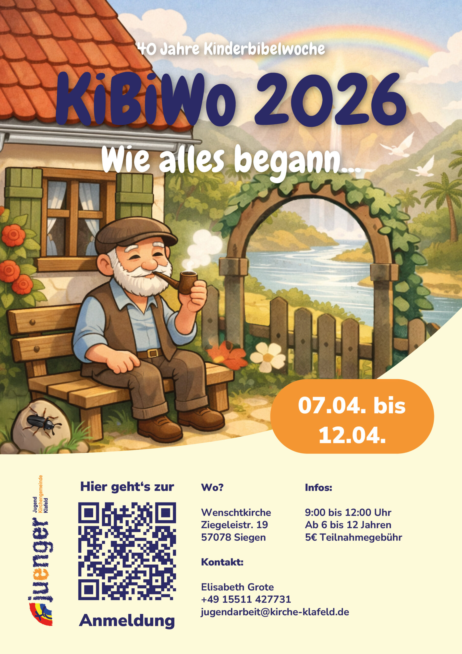 Kinderbibelwoche 2026 Veröffentlicht am 7. April 202627. Februar 2026 Karte nicht verfügbar Datum / Uhrzeit 07.04.2026 - 18.04.202609:00 - 12:00 Ort Gemeindezentrum Wenscht Kategorie Allgemein Gottesdienst Wenscht