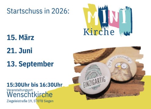 Mini – Kirche 2026 Veröffentlicht am 15. März 202627. Februar 2026 Karte nicht verfügbar Datum / Uhrzeit 15.03.2026 - 14.09.202615:30 - 16:30 Ort Gemeindezentrum Wenscht Kategorie Allgemein Gottesdienst Wenscht